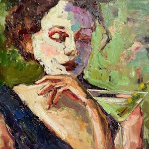 This mini original oil painting presents an expressive portrait study, captured with bold, textured brushstrokes and a rich, contrasting color palette. The intimate scale highlights emotion and painterly movement, making the piece feel personal and immediate.