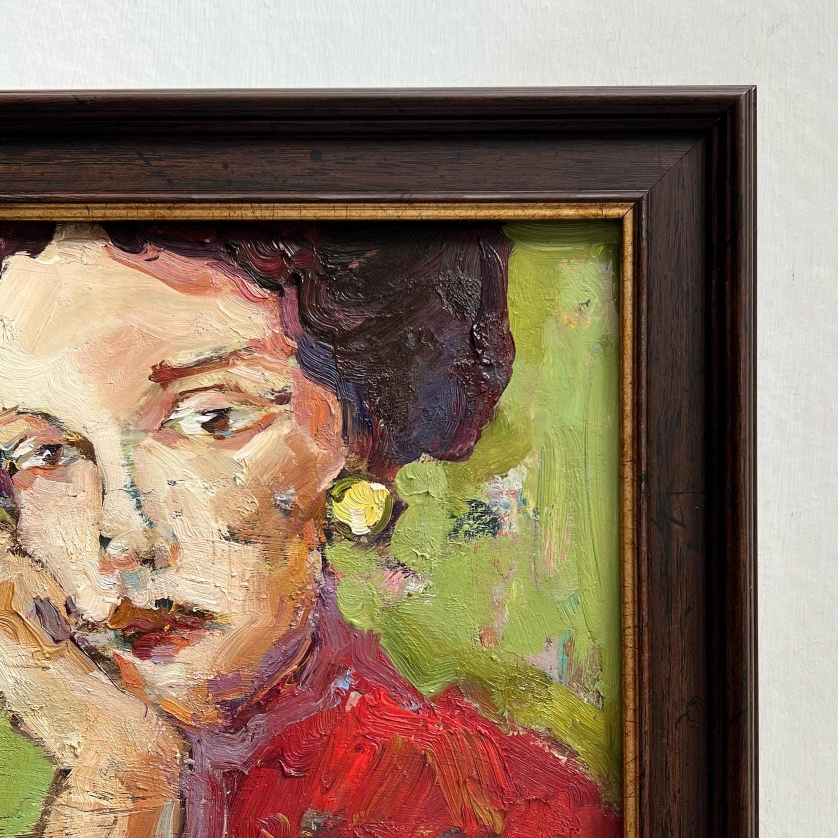To keep your artwork in excellent condition, please avoid hanging it in direct sunlight or areas with high humidity, such as bathrooms or near heat sources. Prolonged exposure to sunlight or moisture may affect the colors and surface over time.